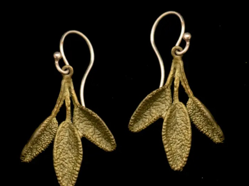 Cast bronze with a hand patina finish accented in two tone glass. 1.25 inch drop and 0.75 inches wide. A gorgeous set by famous botanical jewelry designer Michael Michaud. While traditional lost-wax casting begins with a hand-carved model of wax, Michael Michaud instead uses an actual leaf, branch, or flower in place of the wax model. A mold is created around the botanical element and, as it is heated, the plant matter burns away and leaves behind a beautifully detailed mold of itself. Michael Michaud Jewelry is renowned for its beauty and workmanship and is featured in the finest museums, galleries, and specialty retailers around the world. Many collections are commissioned by leading museums such as The Victoria & Albert Museum, The Art Institute of Chicago, The National Gallery of Art, and the Ch?teau de Versailles. Packaged in a very nice gold ribboned gift box. See our eBay Store for new and sale items at https://www.ebay.com/str/sarasotabydesign.