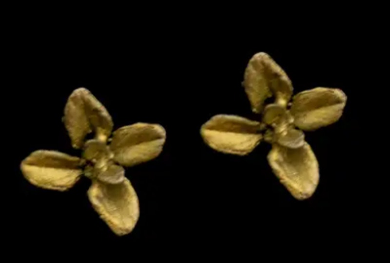 Cast in bronze with a 24k gold finish. These 0.3 inch earrings are cast in bronze and pearls, boasting a hand patina finish. His attention to intricate detail results in true to nature, botanical jewelry. This unique jewelry is made by creating molds directly from botanical elements in a process similar to lost-wax casting. He uses an actual leaf, branch, or flower in place of the wax model. A mold is created around the botanical element and, as it is heated, the plant matter burns away and leaves behind a beautifully detailed mold of itself. Michael Michaud Jewelry is renowned for its beauty and workmanship and is featured in the finest museums, galleries, and specialty retailers around the world. Many collections are commissioned by leading museums such as The Victoria & Albert Museum, The Art Institute of Chicago, The National Gallery of Art, and the Ch?teau de Versailles. See our eBay Store for new and sale items at https://www.ebay.com/str/sarasotabydesign.