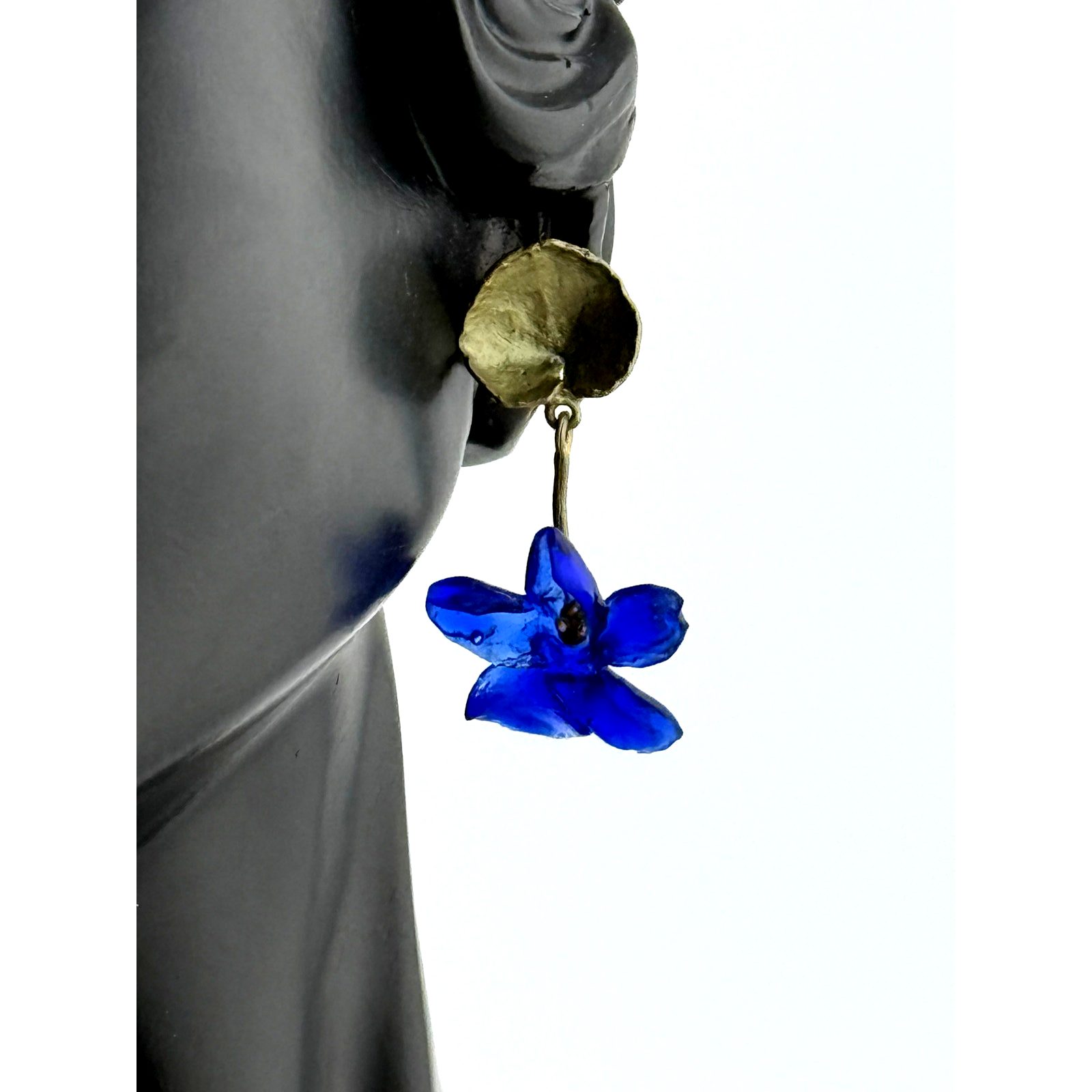 Cast bronze with a hand patina finish. Accented with violet cast glass and 24k gold. 1.5 inch drop and 0.75 inches wide. A gorgeous set by famous botanical jewelry designer Michael Michaud. While traditional lost-wax casting begins with a hand-carved model of wax, Michael Michaud instead uses an actual leaf, branch, or flower in place of the wax model. A mold is created around the botanical element and, as it is heated, the plant matter burns away and leaves behind a beautifully detailed mold of itself. Michael Michaud Jewelry is renowned for its beauty and workmanship and is featured in the finest museums, galleries, and specialty retailers around the world. Many collections are commissioned by leading museums such as The Victoria & Albert Museum, The Art Institute of Chicago, The National Gallery of Art, and the Château de Versailles. Packaged in a very nice gold ribboned gift box. See our eBay Store for new and sale items at https://www.ebay.com/str/sarasotabydesign.
